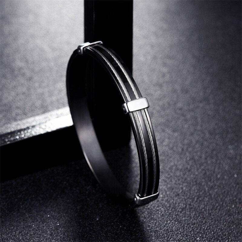 Elevate your style with our Steel Wire Rope Classic Titanium Bracelet, a versatile piece that effortlessly combines the elegance of timeless design with a touch of modern flair. Available in four captivating colors – black, gold, silver, and rose gold – this bracelet is a true expression of fashion-forward masculinity.